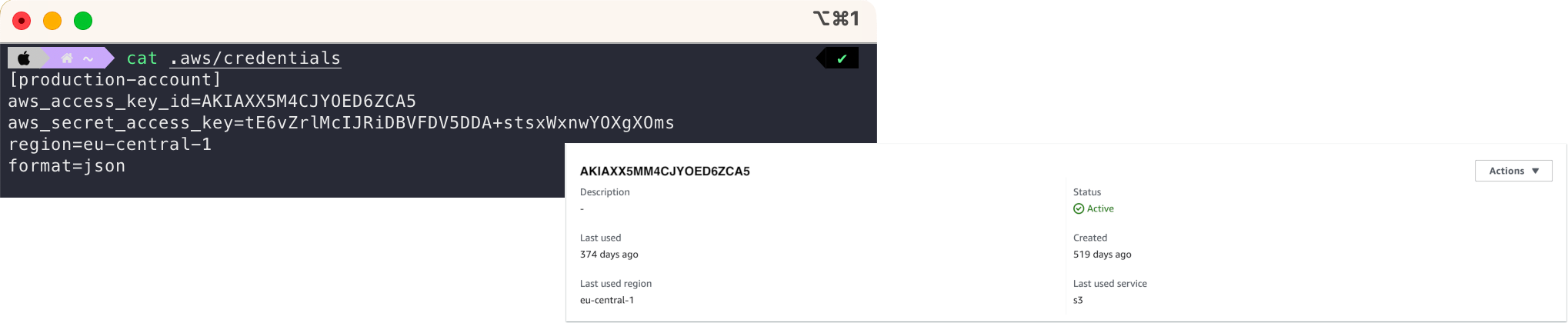 While this example may not depict the absolute worst possible scenario for storing credentials, it does highlight significant concerns associated with permanent access credentials, as outlined in the AWS documentation. The main issue is that these credentials do not expire, leaving them vulnerable to misuse if accidentally exposed. This exposure could occur in various situations, such as during a screensharing session that is being recorded, if displayed unmasked in deployment log outputs, or due to an unlocked computer screen in an office setting. Daily situation every developer knows well.